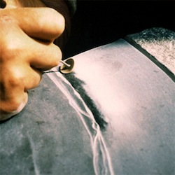 Dégrossissage à la meuleuse des reliefs de la ligne d'horizon